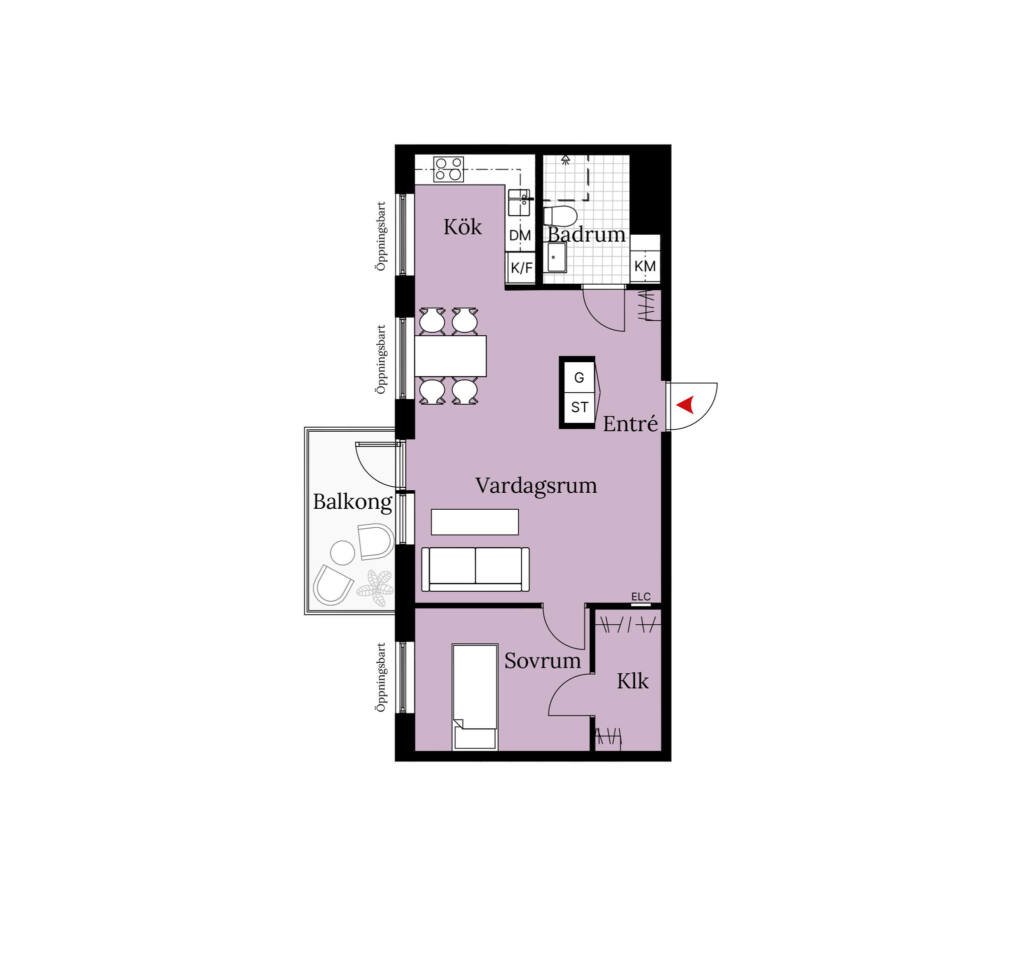 Här har du en välplanerad tvåa med en social planlösning! När du öppnar dörren möts du av en entré med avhängning och förvaring i garderob samt ett städskåp.